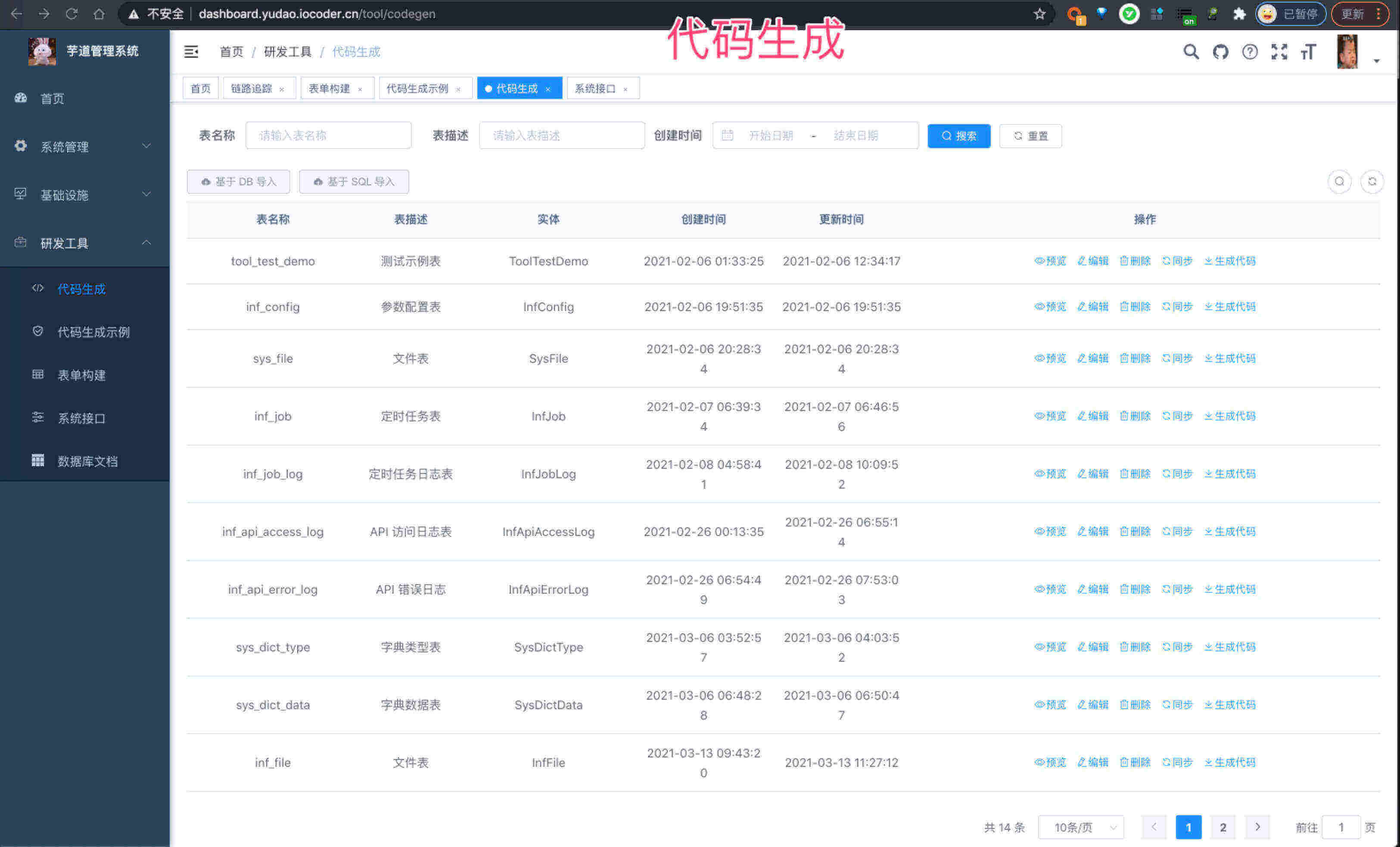 代码生成 代码生成 生成效果 -